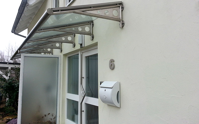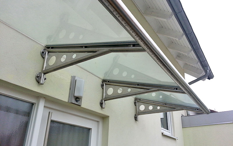 Durch die von uns verwendeten Materialien wird eine hohe Langlebigkeit und eine einfache Reinigung der Oberflächen gewährleistet.Unsere Vordächer gibt es in folgenden Materialausführungen: Edelstahlkonstruktion bzw. verzinkte Stahlkonstruktion in Verbindung mit Glas.