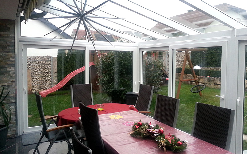 Eine gemütlich eingerichtete Verglasung erhöht den Wohnkomfort und läßt uns die Sonnenstunden nicht nur in der Winterzeit in angenehmer und heller Atmosphäre genießen.